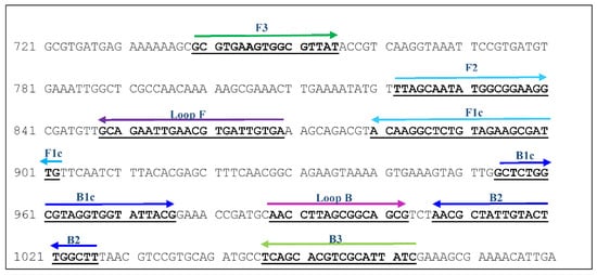 Since it was shown in previous studies that increasing the primer concentrations of FIP, BIP, loop F, and loop B (not F3 and B3) accelerates the amplification process [], the primers were used in different concentrations (Table 3).
