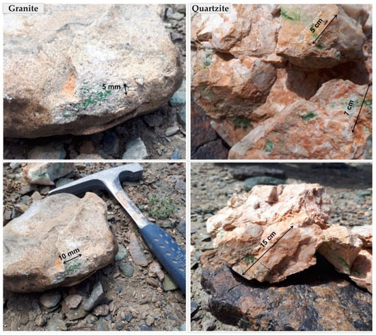- Quartzites collected from the same sampling area as the granites from group B which is nearby Lake Karakul: TAKAW1, TAKAW2, and TAKAW3 (Figure 1, Figure S1).