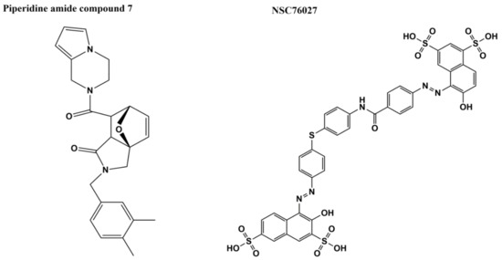 Bacterial topoisomerase I inhibitors identified by in silico screening—piperidine amide compound 7 [95] and NSC76027 [94].