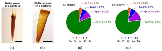 3.1. P. aeruginosa Dominate the Five-Species Polymicrobial Biofilm