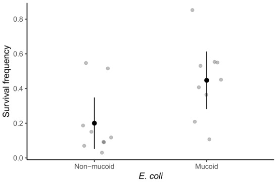 3.3. Mucoidy Is Associated with Low Prey Productivity in the Absence of Predators