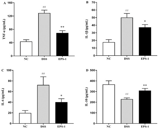 3.3. Effect of EPS-1 Administration on Inflammatory Cytokines