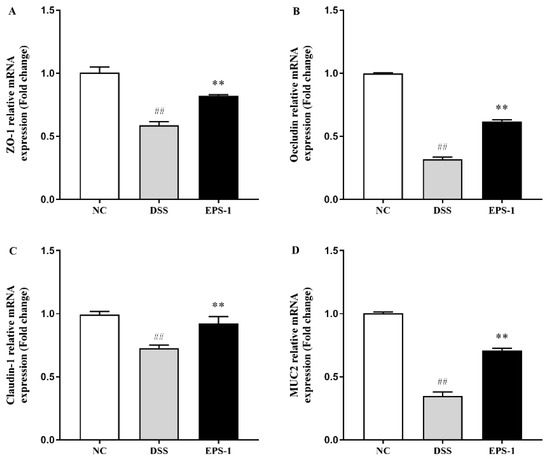 3.4. Effect of EPS-1 Administration on the Composition of Intestinal Barrier
