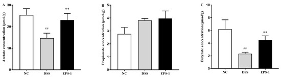 3.6. Effect of EPS-1 Administration on SCFAs Production