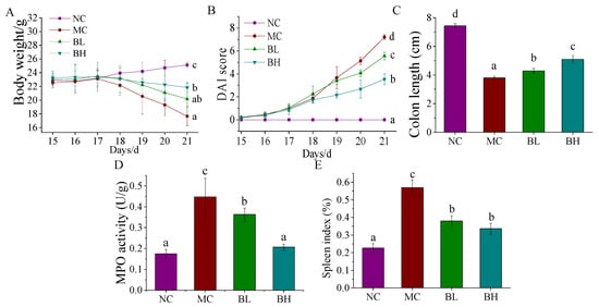 Wang, N.; Wang, S.; Xu, B.; Liu, F.; Huo, G.; Li, B. Alleviation Effects of Bifidobacterium animalis subsp. lactis XLTG11 on Dextran Sulfate Sodium-Induced Colitis in Mice. Microorganisms 2021, 9, 2093. https://doi.org/10.3390/microorganisms9102093