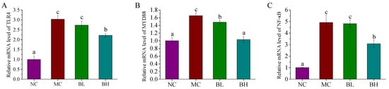 3.5. Effects of B. lactis XLTG11 on the TLR4/MYD88/NF-ĸB Signaling Pathway