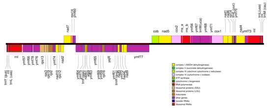 - Gershgorin, R.A.; Gorbunov, K.Y.; Zverkov, O.A.; Rubanov, L.I.; Seliverstov, A.V.; Lyubetsky, V.A. Highly conserved elements and chromosome structure evolution in mitochondrial genomes in ciliates. Life 2017, 7, 9. [Google Scholar] [CrossRef]