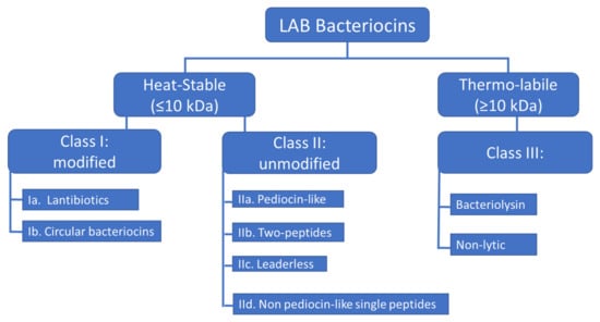 Suggested classification scheme for LAB-bacteriocins, adapted from Alvarez-Siero et al. [14].