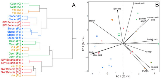 - Capouchová, I.; Kouřimská, L.; Pazderu, K.; Škvorová, P.; Božik, M.; Konvalina, P.; Dvořák, P.; Dvořāček, V. Fatty Acid Profile of New Oat Cultivars Grown via Organic and Conventional Farming. J. Cereal Sci. 2021, 98, 103180. [Google Scholar] [CrossRef]