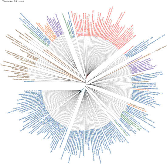 - Liu, S.; Jin, D.; Lan, R.; Wang, Y.; Meng, Q.; Dai, H.; Lu, S.; Hu, S.; Xu, J. Escherichia marmotae sp. nov., isolated from faeces of Marmota himalayana. Int. J. Syst. Evol. Microbiol. 2015, 65, 2130–2134. [Google Scholar] [CrossRef]