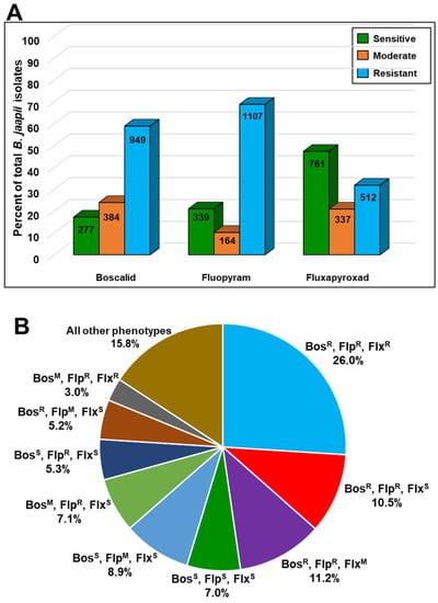 Gleason, J.; Peng, J.; Proffer, T.J.; Slack, S.M.; Outwater, C.A.; Rothwell, N.L.; Sundin, G.W. Resistance to Boscalid, Fluopyram and Fluxapyroxad in Blumeriella jaapii from Michigan (U.S.A.): Molecular Characterization and Assessment of Practical Resistance in Commercial Cherry Orchards. Microorganisms 2021, 9, 2198. https://doi.org/10.3390/microorganisms9112198
