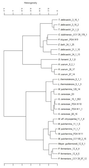 The accession numbers of the yeast strains sequenced and deposited to GenBank are: MZ207954 C. dubliniensis CCY 29-178-1, MZ207959 D. hansenii 5-1-6, MZ207966 H. uvarum 9-2-1, MZ207967 H. uvarum 67/14, MZ207960 L. thermotolerans 5-1-1, MZ207958 L. thermotolerans 5-1-3, MZ207961 M. aff. crysoperlae 11-1-4, MZ207962 M. pulcherrima 11-1-5, MZ207963 M. pulcherrima 11-1-7, MZ207955 M. pulcherrima 125/14, MZ207969 M. guilliermondii 12-5-1, MZ207968 P. fermentans 12-4-4, MZ207970 P. kluyveri PDA W 9, MZ207956 S. cerevisiae 60/16, MZ207957 S. cerevisiae 15-1-552, MZ207953 T. delbrueckii 3-16-1, MZ207964 T. delbrueckii 21-1-5, MZ207965 Z. bailii 24-1-25.