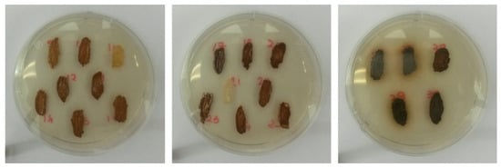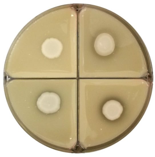 Concerning growth at 37 °C, the strains T. delbrueckii 3-16-1 and 3-16-2, D. hansenii 5-1-6, L. thermotolerans 5-1-1, M. aff. chrysoperlae 11-1-4, M. pulcherrima 11-1-5 and CCY 69-2-15, T. delbrueckii 21-1-5, 21-1-10, 24-1-13, Z. bailii 24-1-25, and H. uvarum 9-2-1, 26/17 and 67/14 were unable to grow. Strains showing moderate to intense growth were, in order: S. cerevisiae 53, C. dubliniensis CCY 29-178-1, M. pulcherrima 125/14, S. cerevisiae 60/16, 15-1-552, PDA W 10, and PDA M 1/1, P. fermentans 12-4-5, and PDA W 9 P. kluyveri. Strains that exhibited growth as poor pellets were M. pulcherrima PDA W 11 and P. fermentans 12-4-4, while the strains L. thermotolerans 5-1-3, M. pulcherrima 11-1-7, and M. guilliermondii 12-5-1 showed some clouding of the culture broth.