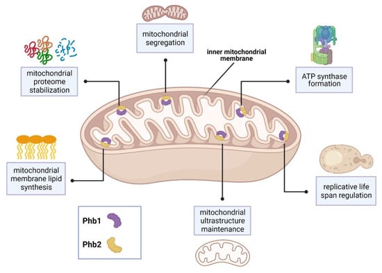 - Signorile, A.; Sgaramella, G.; Bellomo, F.; De Rasmo, D. Prohibitins: A Critical Role in Mitochondrial Functions and Implication in Diseases. Cells 2019, 8, 71. [Google Scholar] [CrossRef]