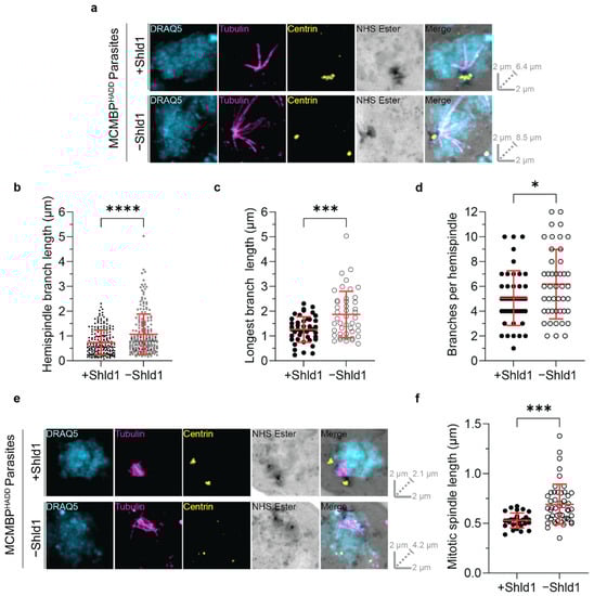 3.2. MCMBP-Deficient Parasites Display Aberrant Hemispindles and Mitotic Spindles