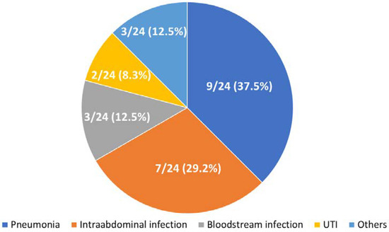 Pie chart demonstrating the infection focus in the 24 enrolled patients.