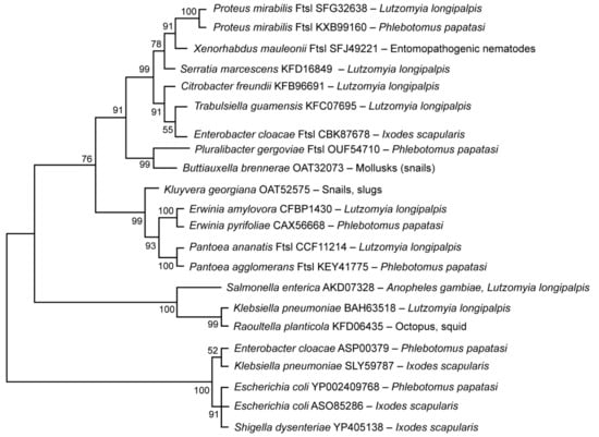 - Noda, H.; Munderloh, U.G.; Kurtti, T.J. Endosymbionts of ticks and their relationship to Wolbachia spp. and tick-borne pathogens of humans and animals. Appl. Environ. Microbiol. 1997, 63, 3926–3932. [Google Scholar] [CrossRef] [PubMed] [Green Version]