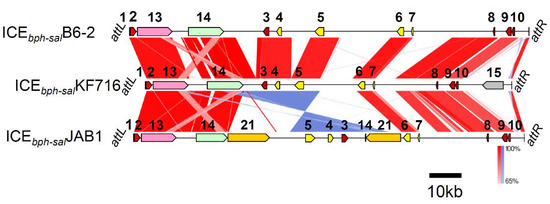 The following are available online at https://www.mdpi.com/article/10.3390/microorganisms9122462/s1, Table S1: PCR primers used in this study, Table S2: Genes encoded on ICEbph-salKF716.