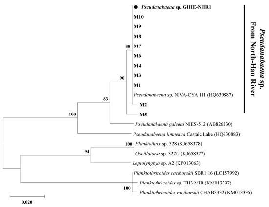 - Yu, G.; Zhu, M.; Chen, Y.; Pan, Q.; Chai, W.; Li, R. Polyphasic characterization of four species of Pseudanabaena (Oscillatoriales, Cyanobacteria) from China and insights into polyphyletic divergence within the Pseudanabaena genus. Phytotaxa 2015, 192, 7. [Google Scholar] [CrossRef]