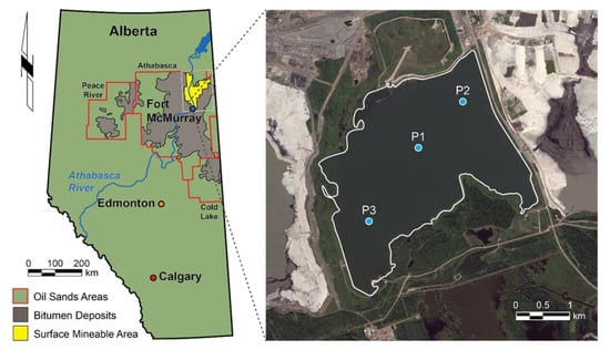 Bitumen extraction from mined oil sands in the Athabasca oil sands region (AOSR) of northeastern Alberta, Canada, generates large volumes of fluid fine tailings (FTT). Various approaches are being developed and implemented to divert FFT from tailings ponds to permanent reclamation landforms []. Water-capped tailings technology (WCTT) involves the permanent storage of FFT under a shallow water column cap, creating pit lakes from exhausted mine pits []. Commissioned in 2012 by Syncrude Canada Ltd., Base Mine Lake (BML) was the first full-scale demonstration of WCTT established in the AOSR. Approximately 23 of these aquatic reclamation landforms are currently planned for the AOSR, and 8 of these will contain tailings []. Ultimately, the long-term success of pit lakes as reclamation landforms is contingent on the effective sequestration of tailings below the water cap, and on the development of conditions that support ecological function as part of a boreal forest ecosystem [].
