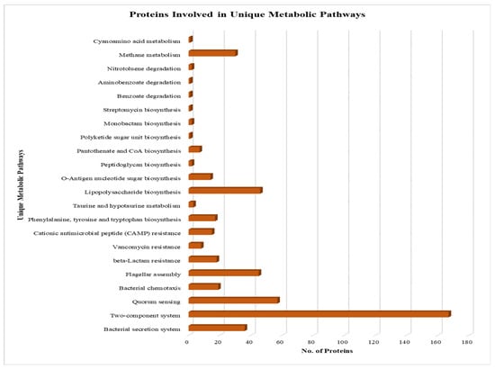 The metabolic pathways of the human host and Salmonella were analyzed using Kyoto Encyclopedia of Genes and Genomes (KEGG) (https://www.genome.jp/kegg/pathway.html, (accessed on 15 August 2021)) [], metabolic pathway database, and an Automatic Annotation Server called KAAS (https://www.genome.jp/kegg/kaas/, (accessed on 3 August 2021). The metabolic pathway IDs with related information of the host and pathogen were retrieved from the KEGG database. The pathways present in both human host and pathogen were characterized as common metabolic pathways, and those found only in the pathogen were selected as unique metabolic pathways. Finally, the amino acid sequences of a protein involved only in unique metabolic pathways were retrieved from the NCBI database.