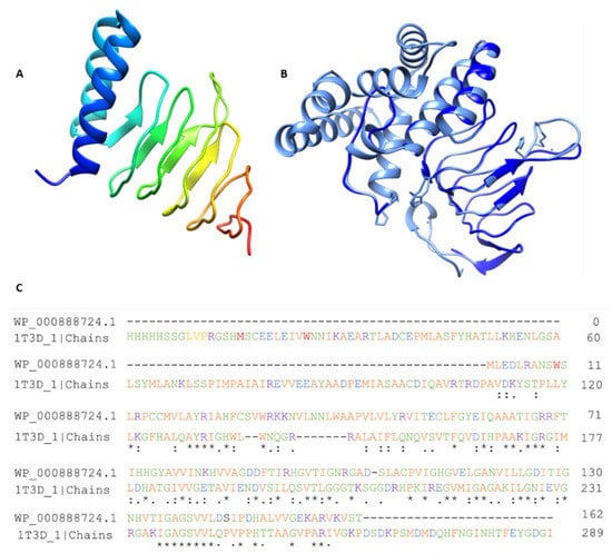 - Kelley, L.A.; Mezulis, S.; Yates, C.M.; Wass, M.N.; Sternberg, M.J. The Phyre2 web portal for protein modeling, prediction and analysis. Nat. Protoc. 2015, 10, 845–858. [Google Scholar] [CrossRef] [PubMed] [Green Version]