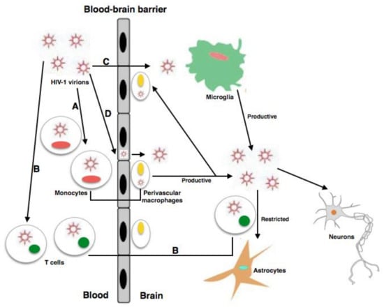 The central nervous system (CNS) symbolizes a crucial sanctuary for HIV-1 [6,7]. Resident macrophages support the productive infection of HIV-1 [7] through the blood–brain barrier (BBB) (as shown in in vitro and in vivo studies) [6,7].