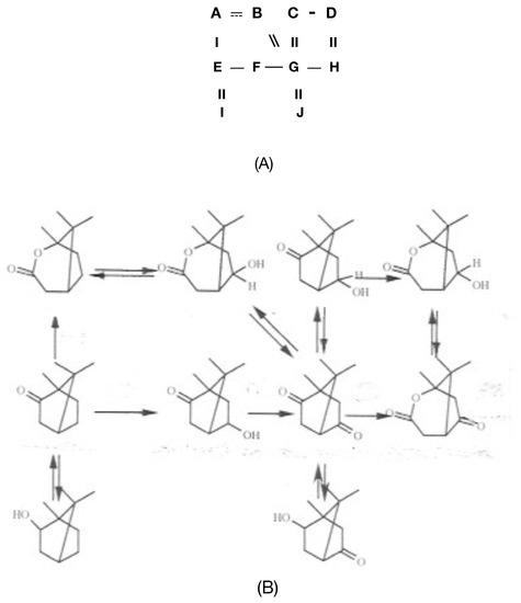- Bradshaw, W.H.; Conrad, H.E.; Corey, E.J.; Gunsalus, I.C.; Lednicer, D. Microbial degradation of (+)–camphor. J. Am. Chem. Soc. 1959, 81, 5507. [Google Scholar] [CrossRef]