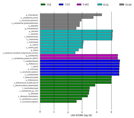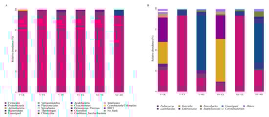 4.3. Effect of LAB Inoculants and V Treatment on Bacterial Community of Alfalfa Silage at 90 Days