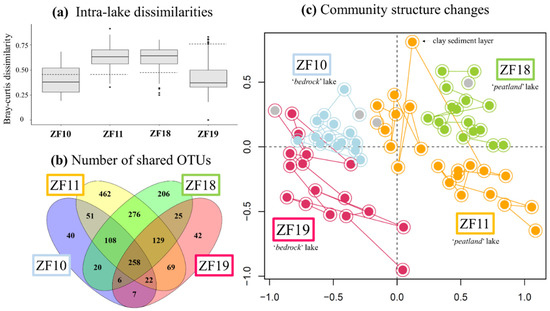 - Crump, B.C.; Amaral-zettler, L.A.; Kling, G.W. Microbial diversity in arctic freshwaters is structured by inoculation of microbes from soils. ISME J. 2012, 6, 1629–1639. [Google Scholar] [CrossRef]