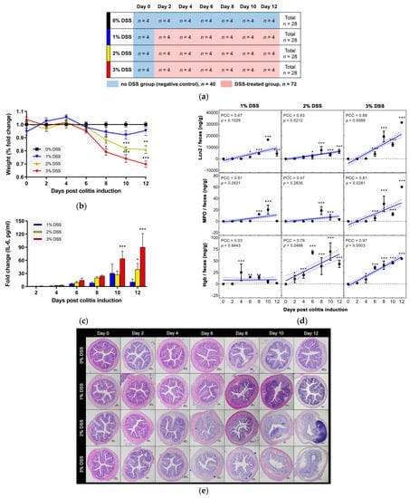 - Perše, M.; Cerar, A. Dextran sodium sulphate colitis mouse model: Traps and tricks. J. Biomed. Biotechnol. 2012, 2012, 718617. [Google Scholar] [CrossRef]