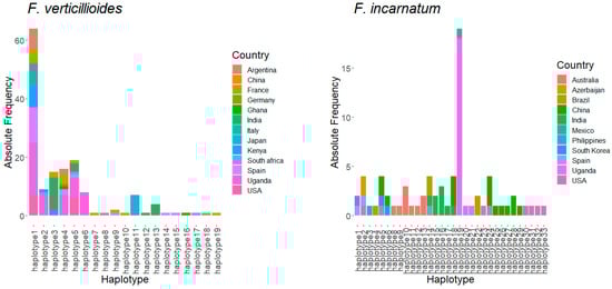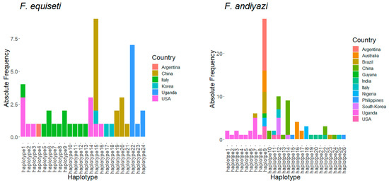 3.4. Haplotype Structure of Fusarium Species in Uganda Relative to Other Countries