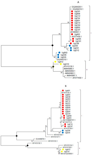 3.3. Genetic Differentiation between Isolates from Uganda and Isolates Reported in Other Countries