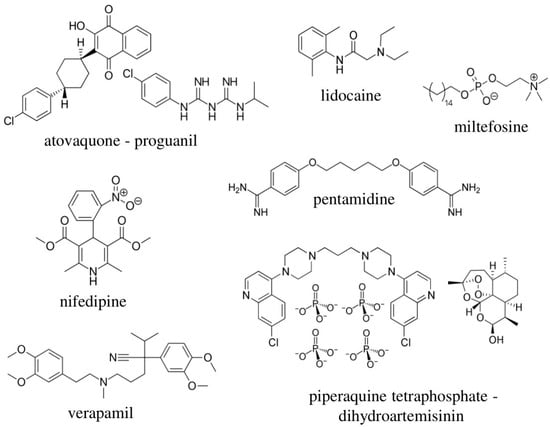- Kaiser, M.; Mäser, P.; Tadoori, L.P.; Ioset, J.R.; Brun, R.; Sullivan, D.J. Antiprotozoal activity profiling of approved drugs: A starting point toward drug repositioning. PLoS One 2015, 10, e0135556. [Google Scholar] [CrossRef]