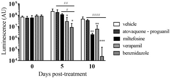 3.6. In Vivo Anti-T. cruzi Activity of the Selected Drugs in a Mouse Model of Acute Infection