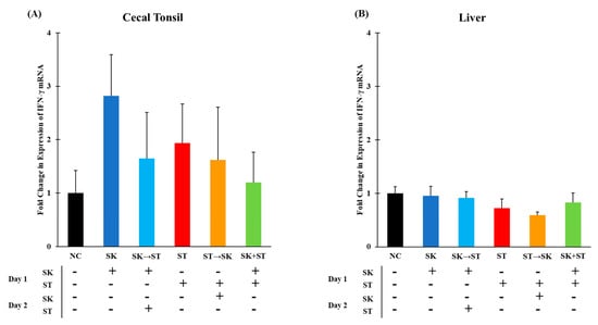 - Dar, M.A.; Urwat, U.; Ahmad, S.M.; Ahmad, R.; Kashoo, Z.A.; Dar, T.A.; Bhat, S.A.; Mumtaz, P.T.; Shabir, N.; Shah, R.A.; et al. Gene expression and antibody response in chicken against Salmonella Typhimurium challenge. Poult. Sci. 2019, 98, 2008–2013. [Google Scholar] [CrossRef]