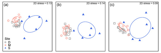 - Oksanen, J.; Blanchet, F.G.; Friendly, M.; Kindt, R.; Legendre, P.; McGlinn, D.; Minchin, P.R.; O’Hara, R.B.; Simpson, G.L.; Solymos, P.; et al. Vegan: Community Ecology Package, R package version 2.5-7; 2020. [Google Scholar]
