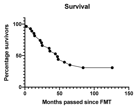 Survival following FMT of patients (n = 34) from the randomized controlled trial [7].