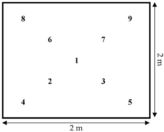 Soil samples were collected from nine fixed sampling locations (Figure 1) within the demarcated area at intervals of approximately two months over the following two years. Approximately 25 g of soil was collected from each of the sampling locations, using an open-sided column soil cylinder (10 mm in diameter), from a depth of 5 to 10 cm and without any visible admixtures e.g., plant parts, stones, insects. The soil cylinder was sterilized with 96% ethanol after each sample. The samples were then stored in aluminium Ziploc® bags in a refrigerator up to one week until processing. A total of 108 soil samples (9 samples from each of 12 samplings) were collected from 12 December 2016 to 22 September 2018.