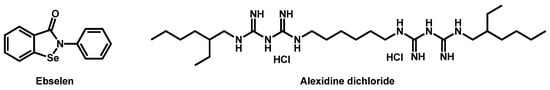 Structures of ebselen and alexidine dichloride.