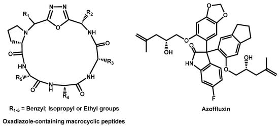 Oxadiazole-containing macrocylic peptides and azoffluxin.