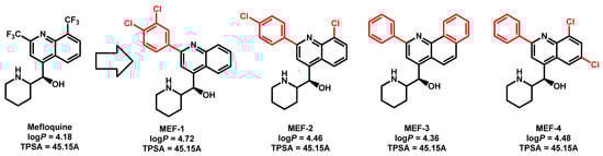 - Montoya, M.C.; Beattie, S.; Alden, K.M.; Krysan, D.J. Derivatives of the antimalarial drug mefloquine are broad spectrum antifungal molecules with activity against drug-resistant clinical isolates. Antimicrob. Agents Chemother. 2020, 64, e02331-19. [Google Scholar] [CrossRef]