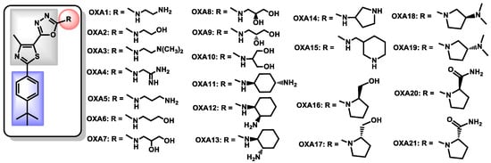 - Hagras, M.; Salama, E.A.; Sayed, A.M.; Abutaleb, N.S.; Kotb, A.; Seleem, M.N.; Mayhoub, A.S. Oxadiazolylthiazoles as novel and selective antifungal agents. Eur. J. Med. Chem. 2020, 189, 112046. [Google Scholar] [CrossRef]