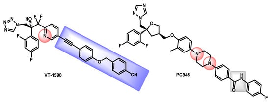 - Wiederhold, N.P.; Patterson, H.P.; Tran, B.H.; Yates, C.M.; Schotzinger, R.J.; Garvey, E.P. Fungal-specific Cyp51 inhibitor VT-1598 demonstrates in vitro activity against Candida and Cryptococcus species endemic fungi including Coccidioides species Aspergillus species and Rhizopus arrhizus. J. Antimicrob. Chemother. 2018, 73, 404–408. [Google Scholar] [CrossRef] [PubMed]