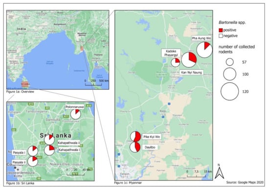 Thus, the main aim of this study was to detect small mammal species living close to human settlements in Myanmar and Sri Lanka and to evaluate the Bartonella prevalence in those small mammal species for the first time. Another purpose was to identify the Bartonella species in these samples by molecular techniques to evaluate their zoonotic potential.