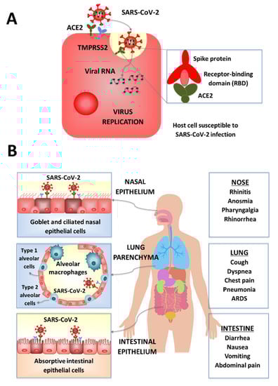 - Guo, M.; Tao, W.; Flavell, R.A.; Zhu, S. Potential intestinal infection and faecal-oral transmission of SARS-CoV-2. Nat. Rev. Gastroenterol. Hepatol. 2021, 15, 1–15. [Google Scholar] [CrossRef]