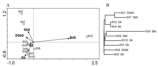 The other exception to the dominance of phylum Actinobacteria was in SV6, where Proteobacteria were dominant (54.5%), from which ≈52% belonged to class Gammaproteobacteria (mostly family Burkholderiaceae) and ≈48% belonged to class Alphaproteobacteria (mostly family Sphingomonadaceae). Moreover, the relative abundance of phylum Proteobacteria was higher than 20% in seven of the ten samples and was the second most abundant overall (≈22%) as displayed in Figure 1 and supplementary materials (Tables S1, S3, S5, S7, and Figure S2).