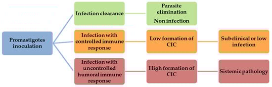 Different studies have highlighted the role of CIC in the pathogenesis of several diseases, including leishmaniasis. It has been shown that when CIC are not cleared by phagocytosis, they remained in blood circulation and can deposit within specific organs, resulting in inflammation and tissue injury. In CanL, it has been demonstrated that CIC concentration is clearly related to disease progression, playing a pivotal role in the most serious clinical manifestations of CanL, such as glomerulonephritis. These findings open new and exciting perspectives for research on the role of CIC in the pathology of CanL and their significance for further progress on vaccine development and new therapies.