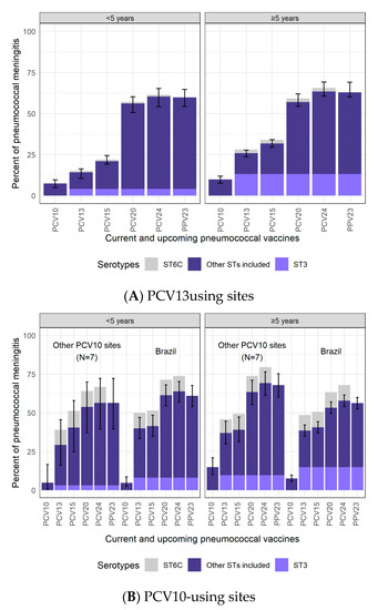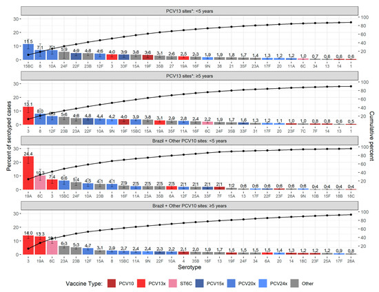 - Sings, H.L.; De Wals, P.; Gessner, B.D.; Isturiz, R.; Laferriere, C.; McLaughlin, J.M.; Pelton, S.; Schmitt, H.-J.; Suaya, J.A.; Jodar, L. Effectiveness of 13-Valent Pneumococcal Conjugate Vaccine Against Invasive Disease Caused by Serotype 3 in Children: A Systematic Review and Meta-Analysis of Observational Studies. Clin. Infect. Dis. 2019, 68, 2135–2143, Corrigendum to: Clin. Infect. Dis. 2021, 1, 1–2, doi:10.1093/cid/ciaa1767. [Google Scholar] [CrossRef]