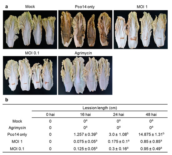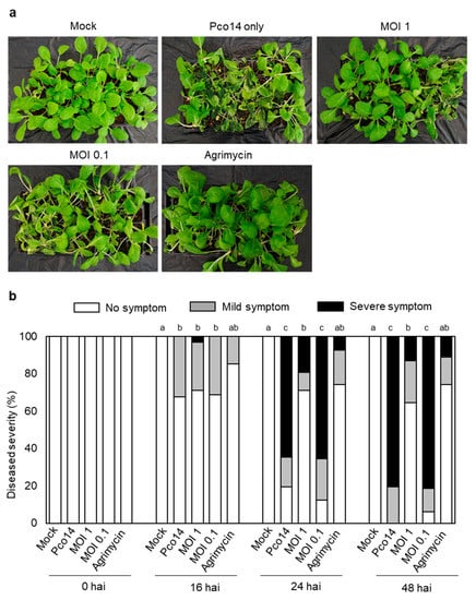3.7. Control Efficacy of phiPccP-1 against Soft-Rot Disease in Kimchi Cabbage Seedlings